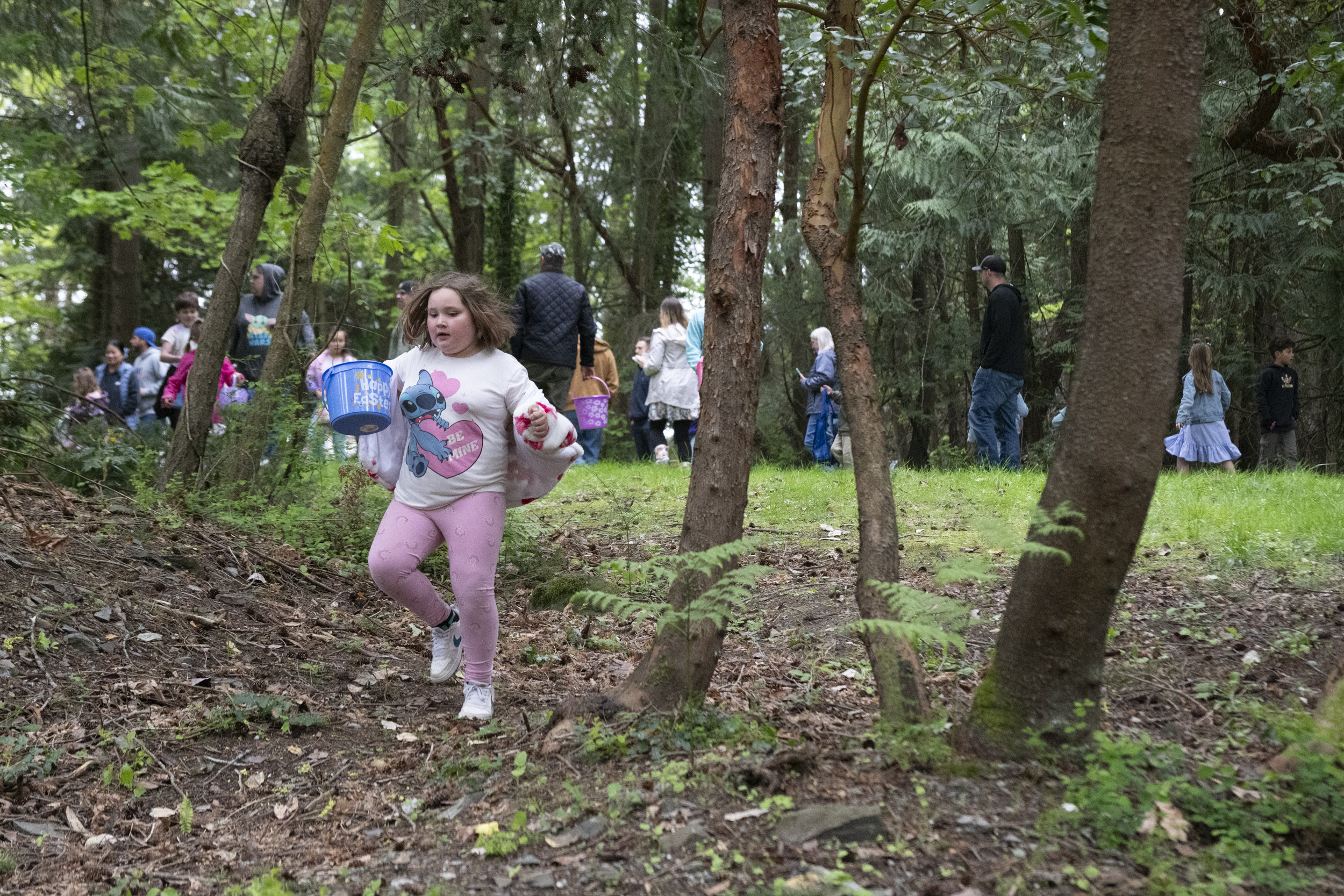 Young hunters dashed through the woods at Pioneer Park during the April 19 La Conner Firefighters Association Easter Egg Hunt.